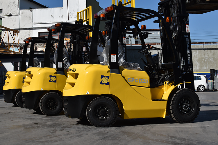 Autoelevador Sinobang CPCD25 con capacidad de carga maxima 2500kg. Torre triple de 4,5mts del altura maxima y desplazador lateral