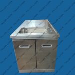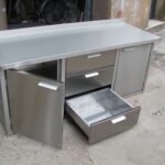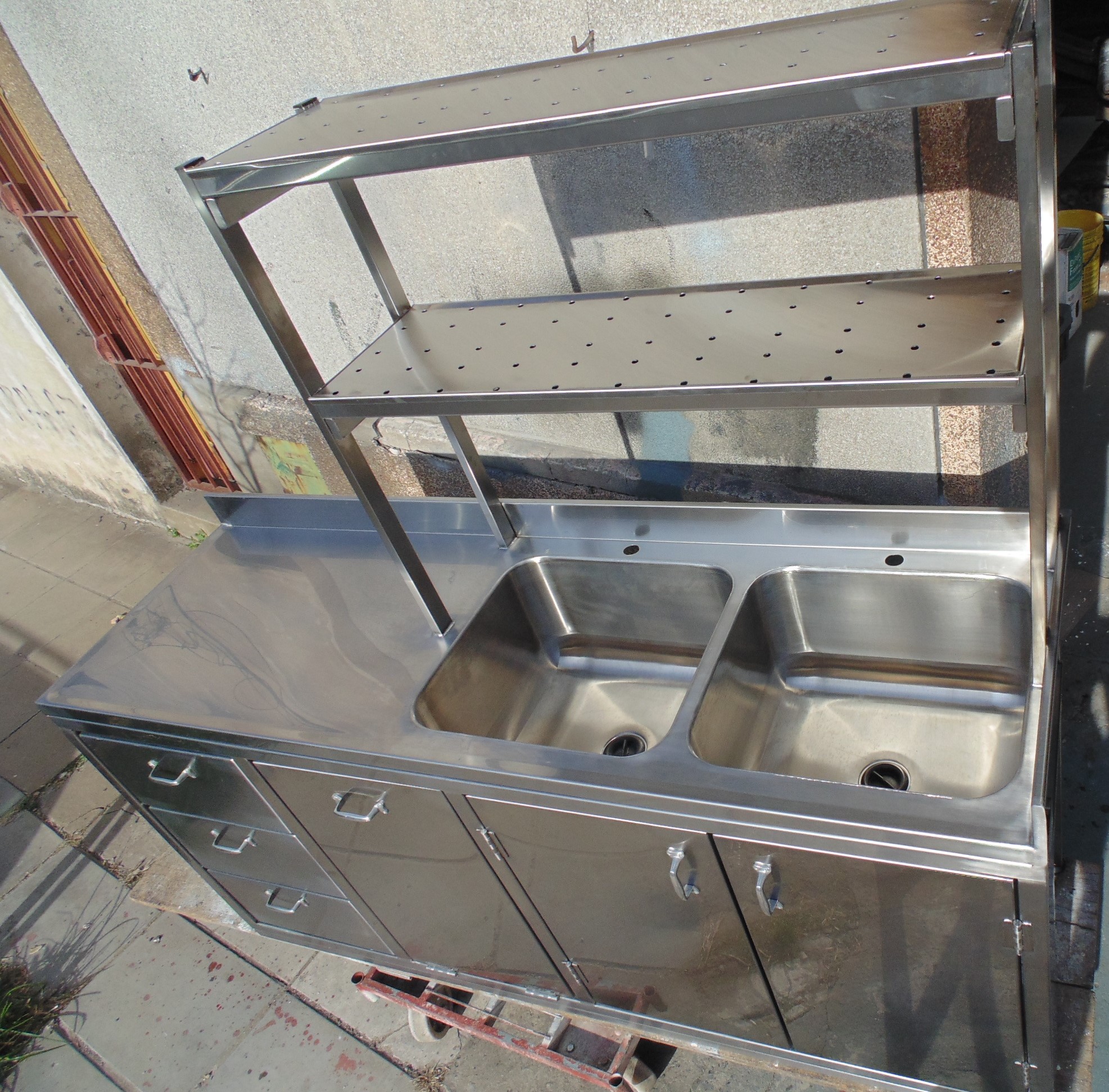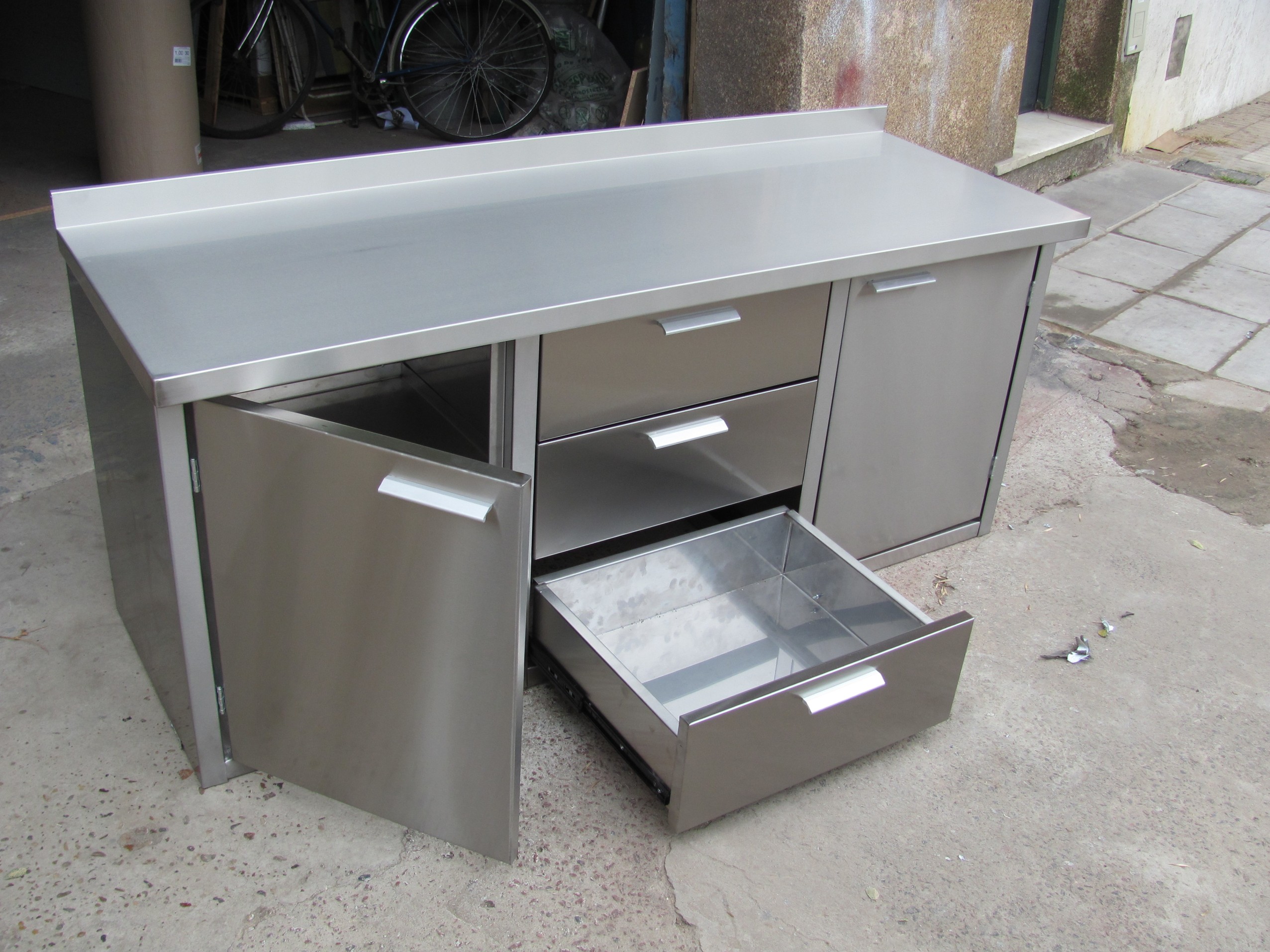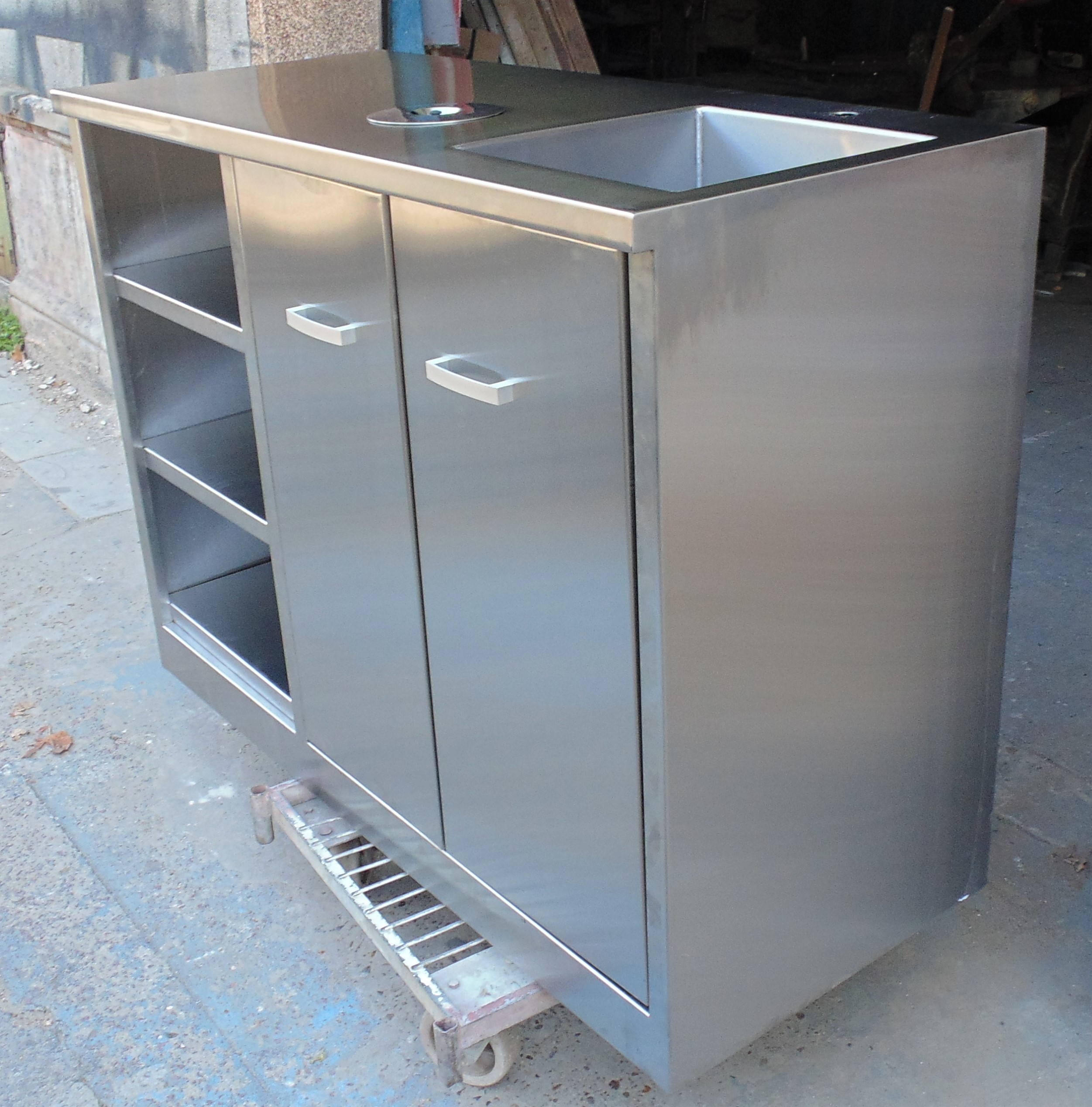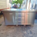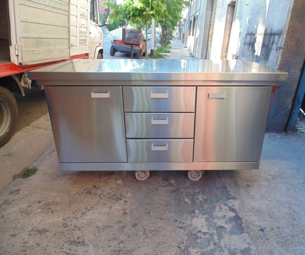 Bajo mesadas con puertas y cajones a medida con mesadas lisas o piletas construido totalmente en acero inoxidable.