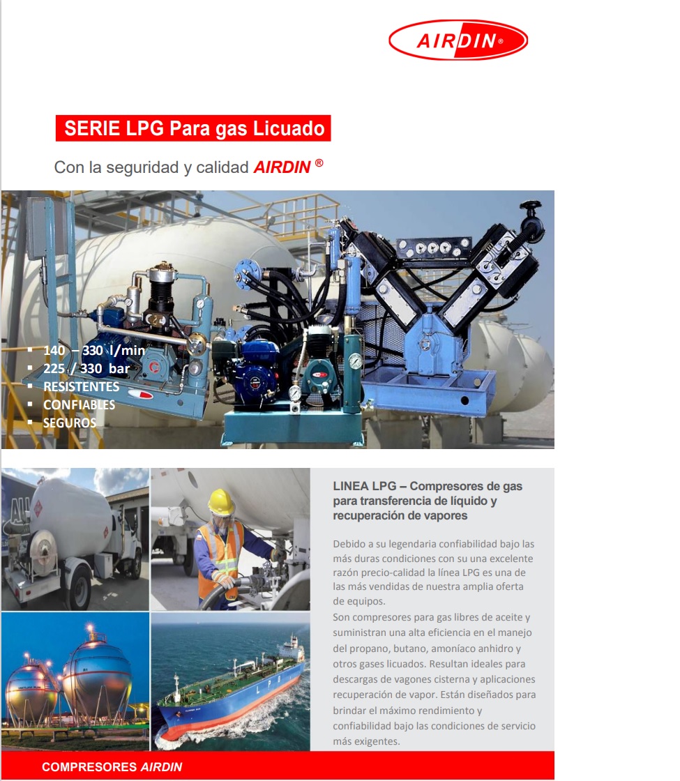 LINEA LPG - Compresores de gas para transferencia de líquido y recuperación de vapores Debido a su legendaria confiabilidad bajo las más duras condiciones con su una excelente razón precio-calidad la línea LPG es una de las más vendidas de nuestra amplia oferta de equipos. Son compresores para gas libres de aceite y suministran una alta eficiencia en el manejo del propano, butano, amoníaco anhidro y otros gases licuados. Resultan ideales para descargas de vagones cisterna y aplicaciones recuperación de vapor. Están diseñados para brindar el máximo rendimiento y confiabilidad bajo las condiciones de servicio mas exigentes.