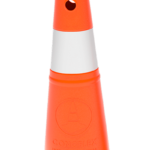 Cono de señalización vial de 70 cm de altura, fabricado en material polietileno semirrígido. Color naranja vial, con filtro UV para protección solar. Conformado en “2 piezas” llamadas: Cono y Base de Contrapeso. El diámetro mayor del cono es de 18 cm y 4 cm en su diámetro menor. Presenta 2 bandas reflectivas de 7,5 cm de ancho cada una, con características HIP (HIGH INTENSITY PRISMATIC) según normas IRAM ASTM D4956 Tipo-3. Las mismas se encuentran bajo relieve de 0,5 cm para su mayor protección. El cono sin su base de contrapeso, tiene un peso de 0,8 kg. Base de contrapeso: La base está fabricada en material PVC flexible de color negro, conformada en “una sola pieza” cuadrada de 30 x 30 cm, una altura de 6 cm y un peso de 2 kg. El peso total del cono con su base de contrapeso es de 2,8 kg±0,5 kg.