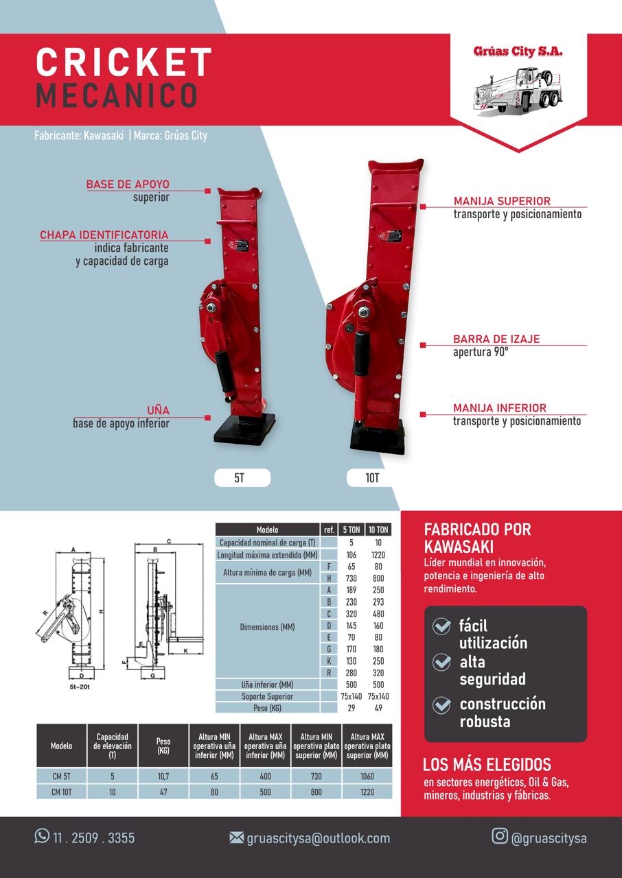 Los crickets se destacan por su fácil utilización y su resistencia. Se utilizan para elevar todo tipo equipos, maquinas, implementos los transforman en una herramienta indispensable.