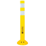 Delineador rebatible para demarcación vial, fabricado en material poliuretano, con una dureza de 85 shore A, con filtro UV para protección solar. Conformado en “dos piezas”. Altura 60 cm, diámetro de 8 cm y un peso de 1,1 kg. Su base de apoyo tiene un diámetro de 20 cm fabricada en material nylon, provista de 4 orificios para fijación con anclaje mecánico al suelo, cuenta con 2 orificios para la sujeción del rebatible, mediante 2 pernos plásticos de 10 cm cada uno. Presenta 2 bandas reflectivas de 7,5 cm de ancho cada una, con características HIP (HIGH INTENSITY PRISMATIC) según normas IRAM ASTM D4956 Tipo-3. Las mismas se encuentran bajo relieve para su mayor protección