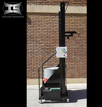Elevador Volcador de Barriles y Tambores El EleVol Integra, está diseñado para hacer el trabajo levantando, moviendo y volcando tambores de hasta 250 kg. Gracias a su versatilidad es posible trasladar el EleVol hasta el lugar requerido, sólo basta una persona para hacerlo. La altura de volcado es regulable haciéndolo adaptable a todas las necesidades e industrias del mercado. De gran diseño estético y robustez, el EleVol es un equipo eléctrico que garantiza el funcionamiento automático de volcado de residuos Equipado con un motor de 380V con inverter alimentación de 220V. Potencia de 1,5 HP, reductor 40:1 y un tablero de comando que lo hace muy sencillo de operar el EleVol es ideal para manipular y disponer de los residuos de la industria dentro de su planta en forma eficiente y segura , evitando accidentes y lesiones.