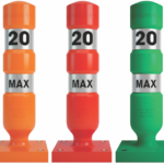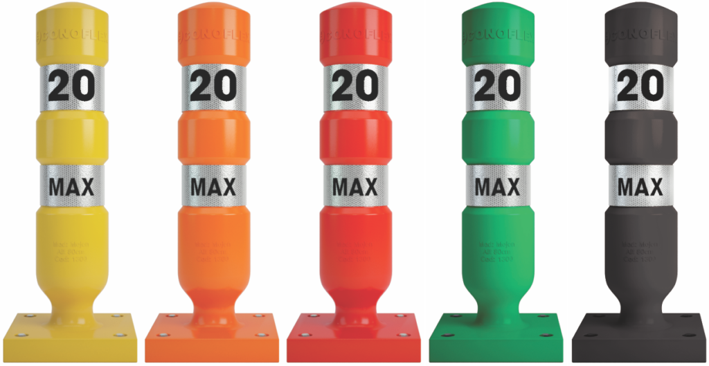 Mojón plástico para demarcación vial, fabricado en material polietileno de media densidad, con filtro UV para protección solar. Conformado en “una sola pieza”. Medidas: En su parte superior tiene Ø 16 cm de diámetro y su base 27 x 27 cm. Provisto de 4 orificios para fijación con anclaje mecánico al suelo. Presenta 2 bandas reflectivas de 9 cm de ancho cada una, con características HIP (HIGH INTENSITY PRISMATIC) según normas IRAM ASTM D4956 Tipo-3. Las mismas se encuentran bajo relieve para su mayor protección. La altura del mojón es de 75 cm y su peso es de 3 kg±0,2 kg.