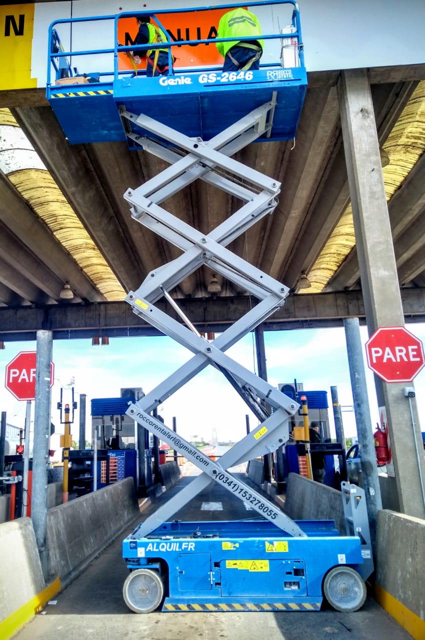 Servicio de alquiler de plataformas eléctricas tipo tijera, contamos con equipos de última generación, marcas GENIE Y JLG - Para trabajos de 8, 10 y 12 metros de altura, aptas para todo tipo de rubros y establecimientos. Trabajá de forma segura y optimizá tiempos de ejecución.