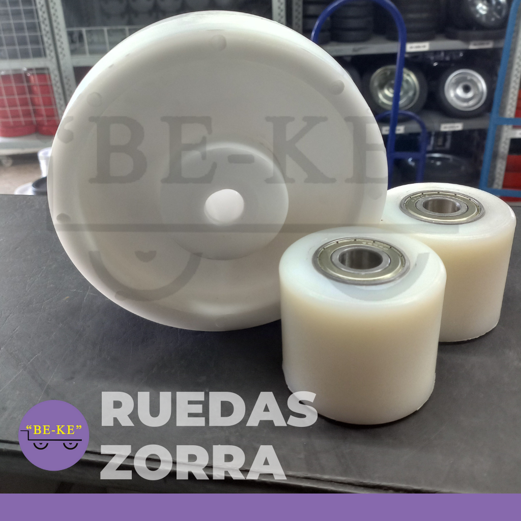 Tenemos ruedas para zorras hidráulicas y apiladores, en nylon o hierro poliuretano en distintas medidas. Rodillos con o sin rulemanes. Nos dedicamos a la fabricación y comercialización de ruedas industriales, además de elementos para el movimiento de materiales, carros, zorras, en medidas estándar y especiales. Nos avalan más de 70 años de experiencia, dedicación, responsabilidad y servicio, en el ramo con nuestra marca Be-Ke a nivel nacional. Proveemos ruedas de distintos materiales y medidas para uso específico en plantas industriales metalúrgicas, alimenticias, frigoríficas, curtiembres, etc. Contáctese con nosotros y trataremos de darle el mejor servicio solucionando sus necesidades.